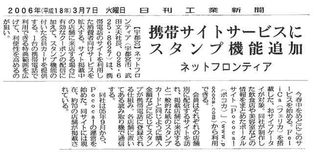 平成18年3月7日の日刊工業新聞にポコカの記事が掲載されました。 >本文はこちら