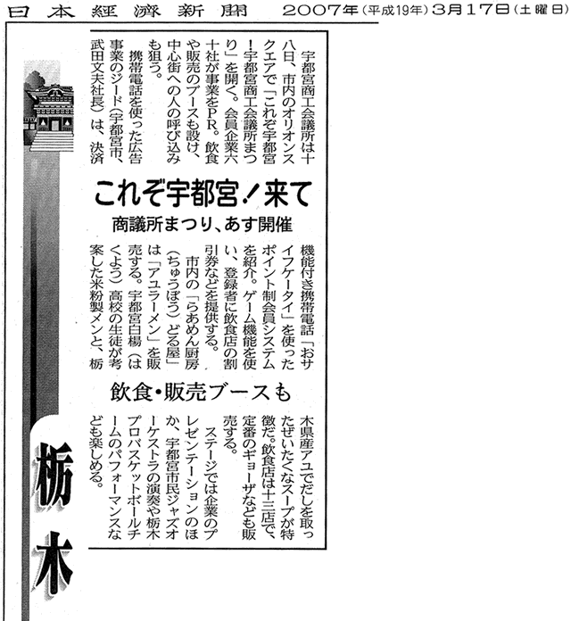 平成19年3月17日の日本経済新聞に株式会社ZEADの記事が掲載されました。 >本文はこちら